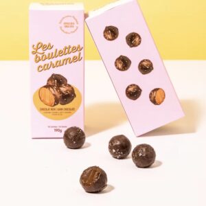 Offrez seize délicieuses boulettes de caramel tendre enrobées de chocolat noir et saupoudrées de fleur de sel. À la chocolaterie de quartier Ernestine, tout est fait à la main sur place, à Montréal, avec une imagination libre.