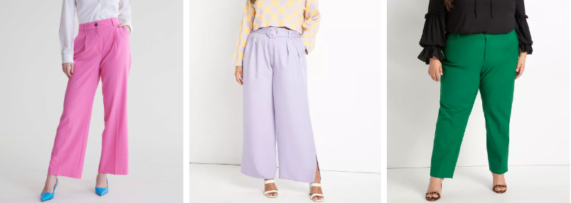 Si vous pensez que les pantalons n’ont rien d’excitant, attendez de voir les tendances du printemps! De la couleur, des imprimés, des détails qui nous sortent de l’ordinaire : ça fait du bien. En ajoutant à cela des tailles hautes ou régulières, de la pleine longueur ou du 7/8, des coupes ajustées, droites, amples ou évasées, chacune y trouvera assurément son bonheur! :)