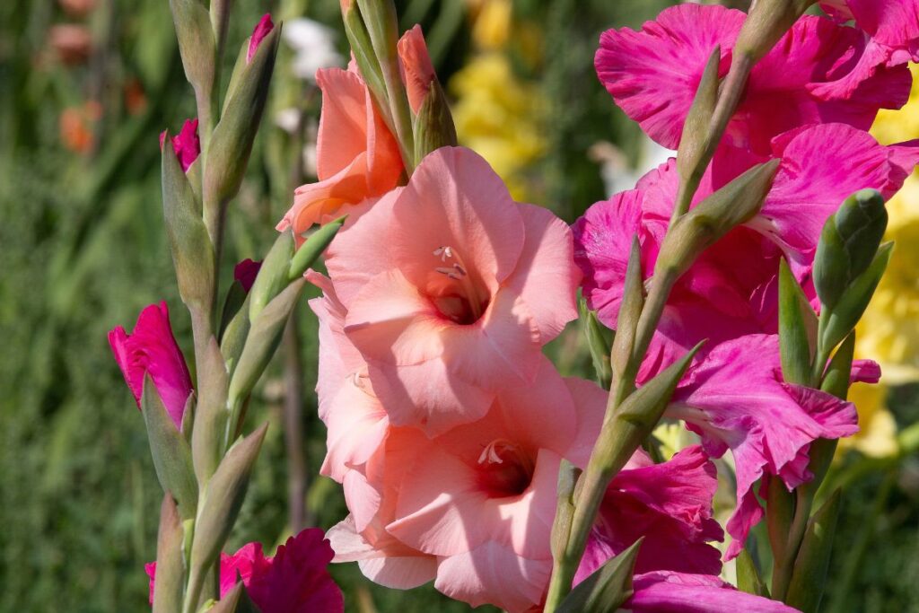 Le glaïeul (Gladiolus), cultivé pour sa floraison estivale, nécessite un soin particulier pour être conservé d’une année sur l’autre, surtout dans les régions froides. En effet, le bulbe (techniquement un corme) doit être rentré à l’intérieur pendant l’hiver. Ce bulbe produit entre sept et neuf feuilles linéaires et développe un épi richement garni de fleurs tubulaires disponibles dans une large palette de couleurs.