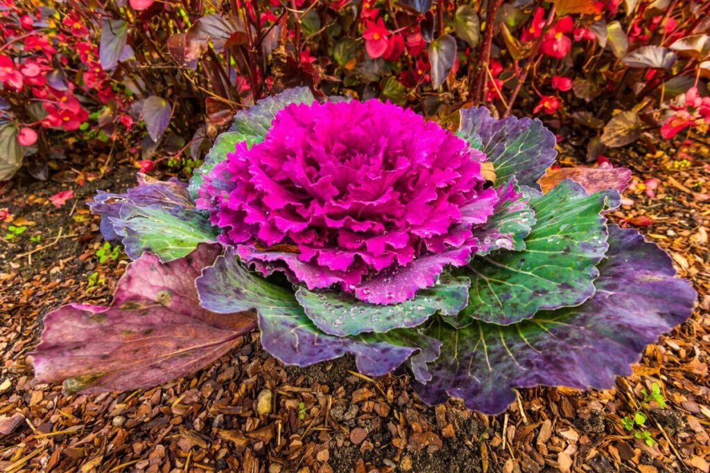 Toutefois, au Canada, il est essentiel de protéger les choux d’ornement hivernants contre le froid. Sans protection supplémentaire, la plupart ne survivent au gel qu’à partir de la zone de rusticité 6. Néanmoins, avec un paillis adéquat et une épaisse couche de neige, ils peuvent parfois s’épanouir même en zone 4.