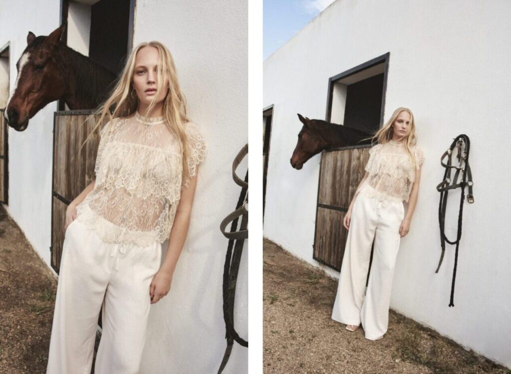 Entre délicatesse et caractère, ce look incarne une féminité assumée et lumineuse. La dentelle aérienne rencontre la fluidité du pantalon pour une silhouette à la fois douce, moderne et résolument inspirante. Un duo gagnant pour celles qui désirent un style chic et naturel!