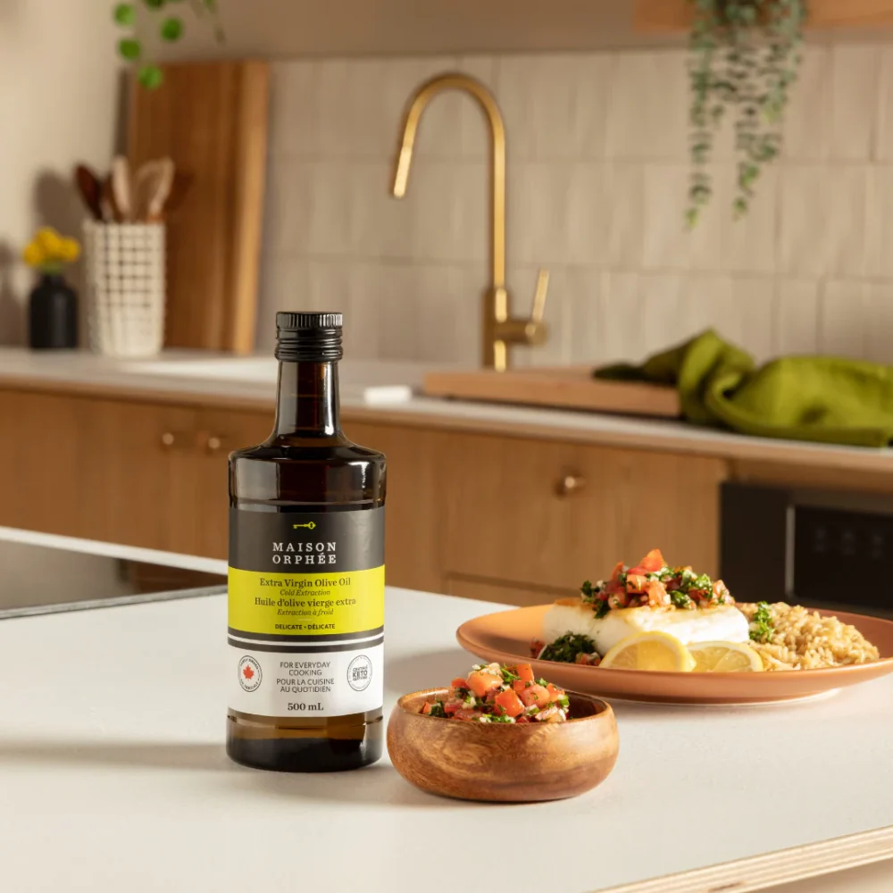 Une huile d’olive raffinée permet de relever un plat sans le surcharger. L’huile d’olive vierge extra délicate de Maison Orphée se démarque par sa légèreté, ses arômes de verdure et sa très grande polyvalence. Elle convient aussi bien aux marinades qu’aux cuissons douces, aux mayonnaises maison ou aux vinaigrettes. Son profil tout en douceur — notes d’amande, herbe fraîchement coupée — en fait l’alliée discrète d’un repas des Fêtes élégant et gourmand!