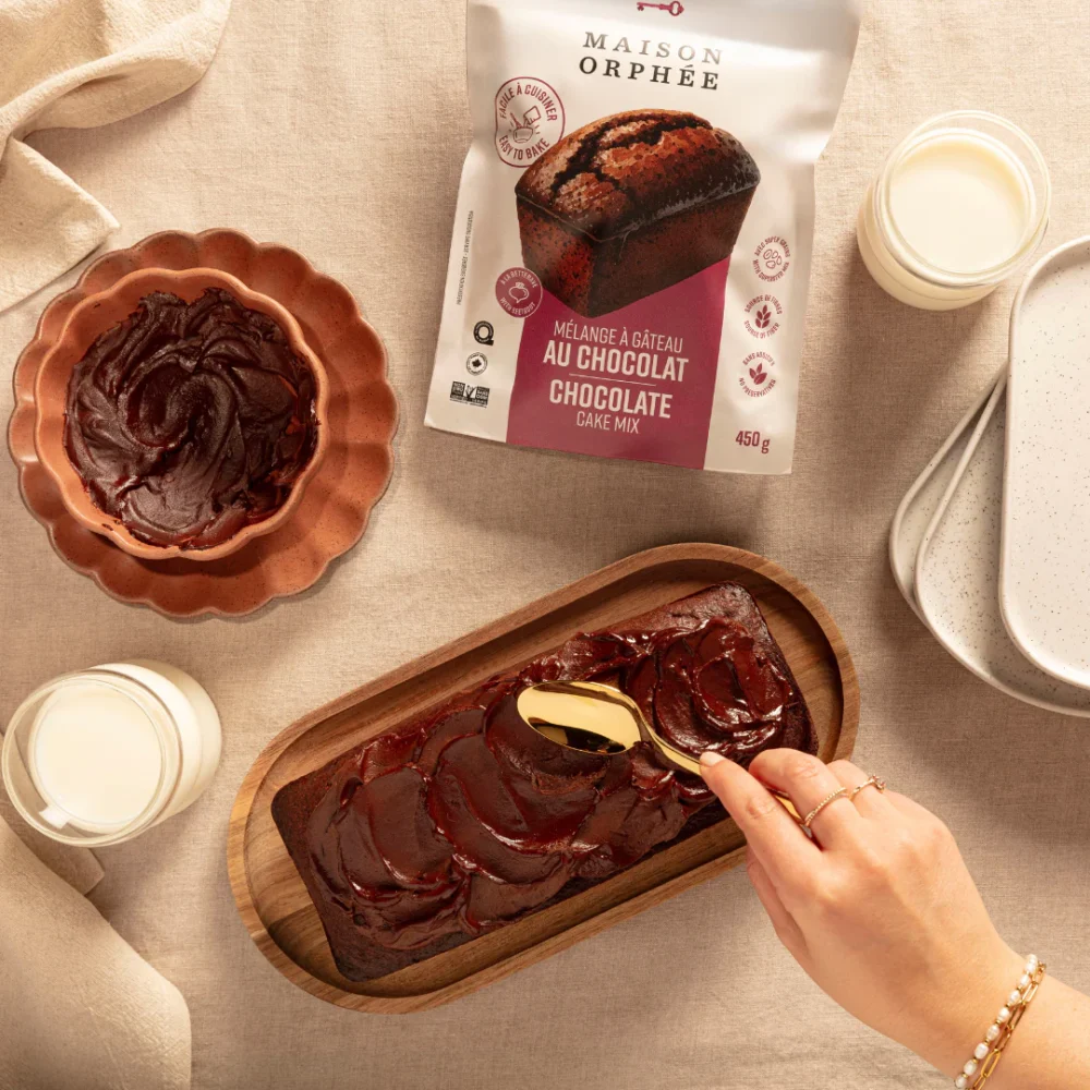 Clôturer la soirée avec un moment sucré ne signifie pas que l’on doit se lancer dans une création compliquée. La Maison Orphée propose un Mélange à gâteau au chocolat qui combine richesse du chocolat et la douceur naturelle de la betterave. Il suffit d’ajouter du lait, des œufs et l’huile de votre choix (parmi celles mentionnées plus haut bien sûr!) pour obtenir un gâteau moelleux, ou une série de cupcakes rapides. En toute simplicité, vous offrez un dessert gourmand, élégant, sans y passer tout votre après‑midi.